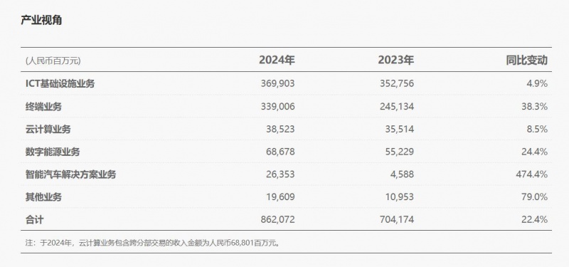 从具体业务表现来看,2024年,华为ICT基础设施业务实现销售收入3699,03亿元,同比增长4,9%;终端业务实现销售收入3390,06亿元,同比增长38,3%;云计算业务实现销售收入385,23亿元,同比增长8,5%;数字能源业务实现销售收入686 午夜影院在线观看,78亿元,同比增长24,4%;智能汽车解决方案业务实现销售收入263,53亿元,同比暴涨474,4%。 。
