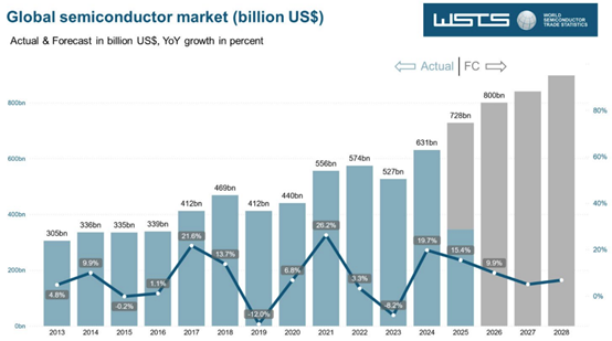 展望未来,WSTS 2025年春季的预测已基本得到上半年业绩的印证。结合最新数据,2025年全年预测已上调至7280亿美元,年增长率为15 午夜影院在线观看,4%,增幅为4个百分点。2026年的预测略有上调,预计全年增长率为9,9%,达到8000亿美元。 。