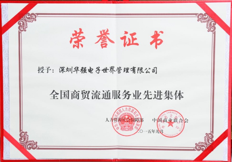 2015年9月15日下午,由人力资源社会保障部 午夜影院,中国商业联合会组织召开的“全国商贸流通服务业先进集体,劳动模范和先进工作者表彰大会”在北京京西宾馆隆重举行,这是中国商业联合会首次针对商贸流通服务业先进集体,劳动模范和先进工作者的评选表彰活动,人社部,商务部,国资委,中国商业联合会等有关领导出席了此次大会,深圳华强电子世界管理有限公司荣获“全国商贸流通服务业先进集体荣誉称号”,华强电子世界总经理王晓飞作为先进集体企业代表参加了此次表彰大会并上台接受领奖, 。
