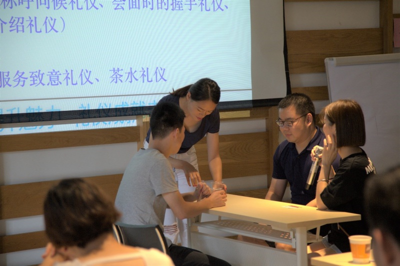讲师说商务礼仪的模块实在是太大了 午夜高清播放,就拿接待会面来说,就分为接待前的准备,接待会面中的规格,规模,计划,迎接,沟通及告别,每一个单元都是满满的干货,讲师全天通过现场的演绎,案例的分析,视频的讲解,让在场的同事们都能够深入浅出的理解每一个小技巧,希望能够在工作中带来帮助,得以学以致用, 。